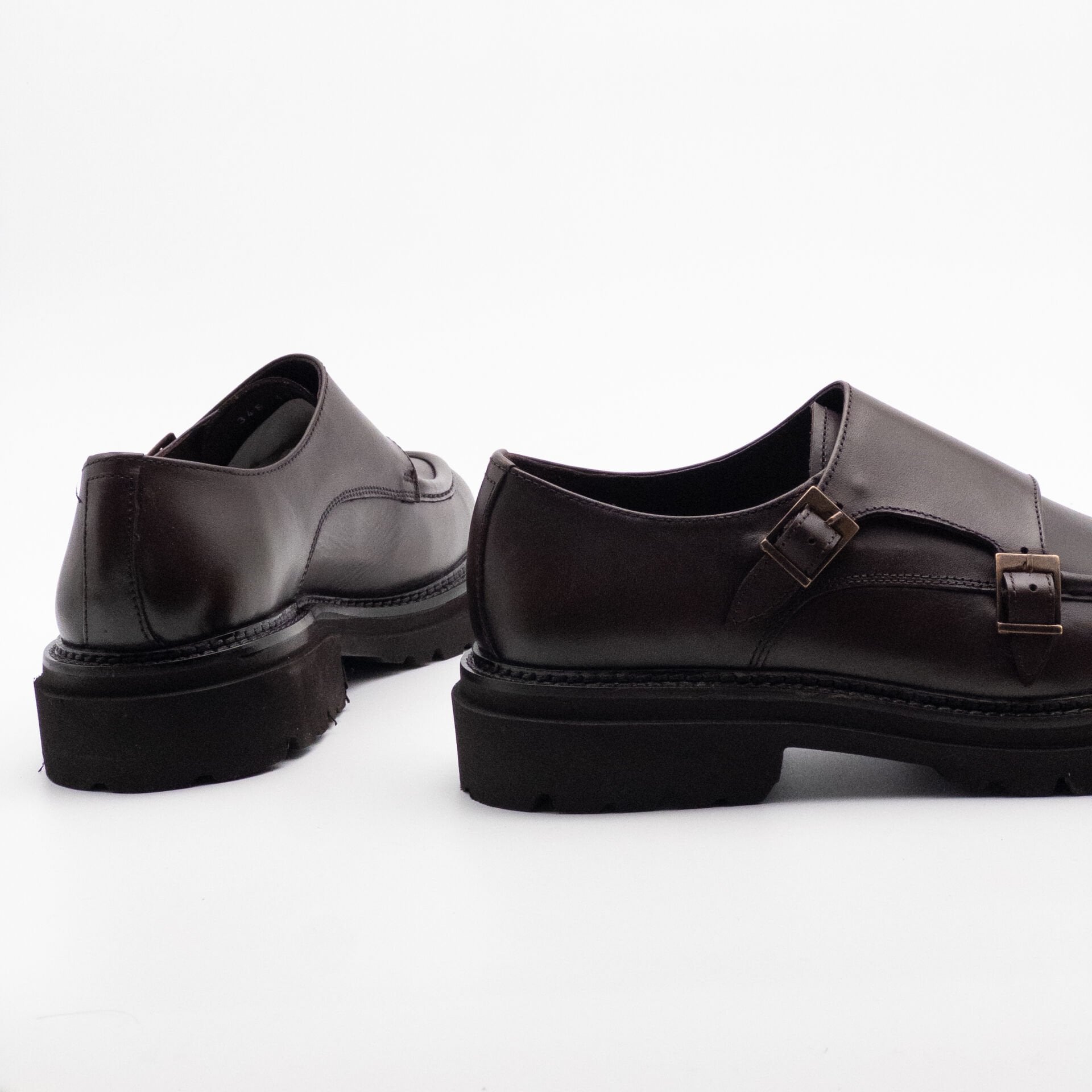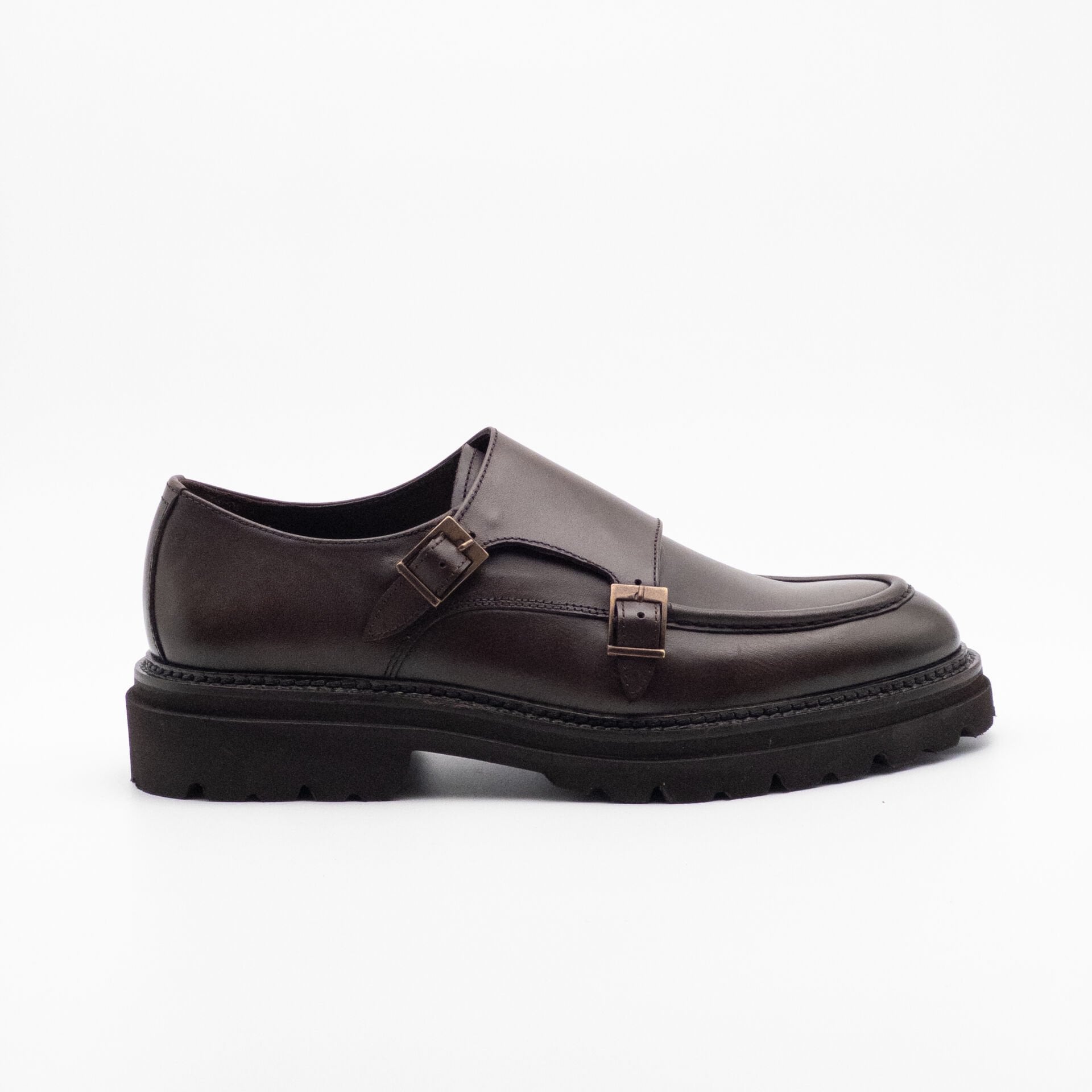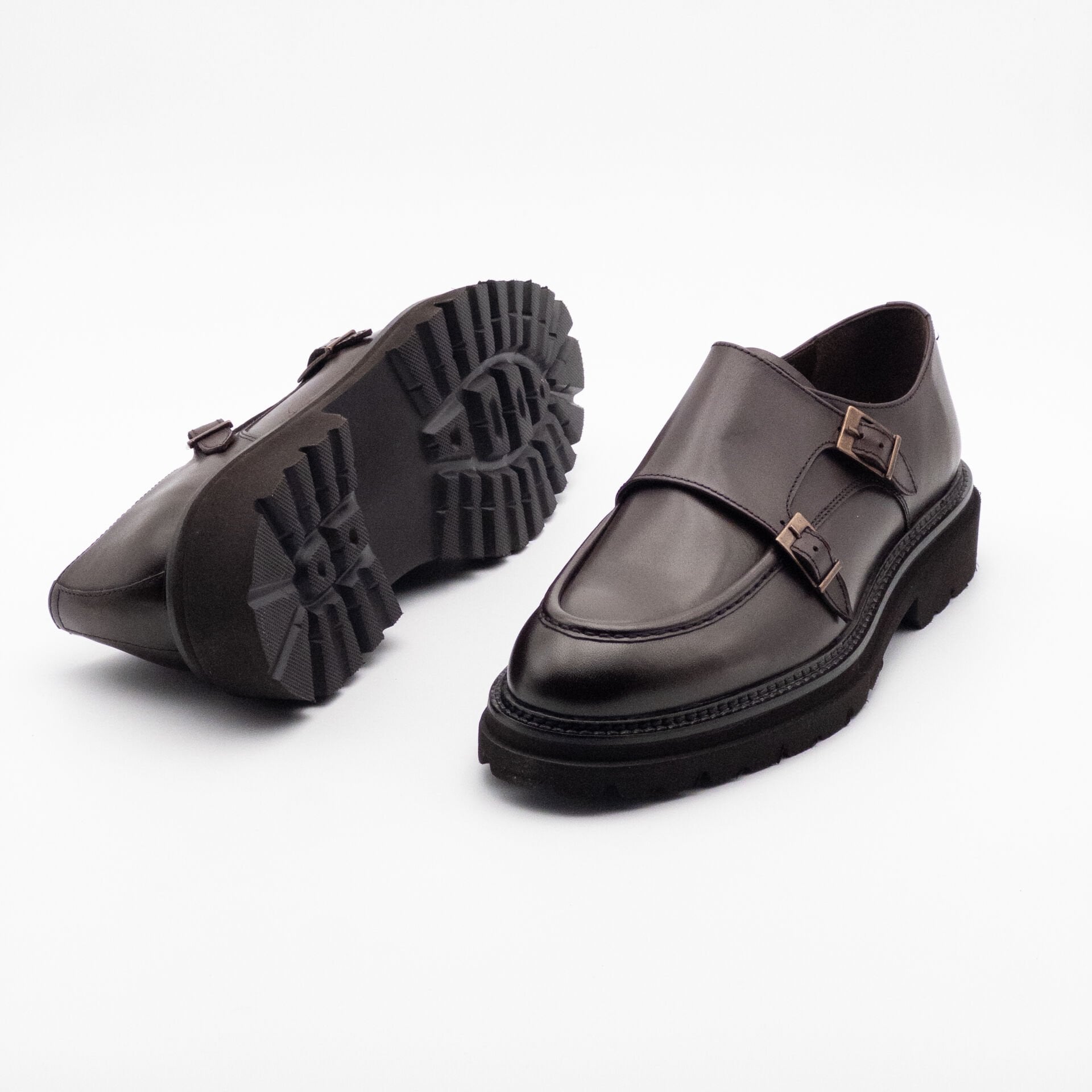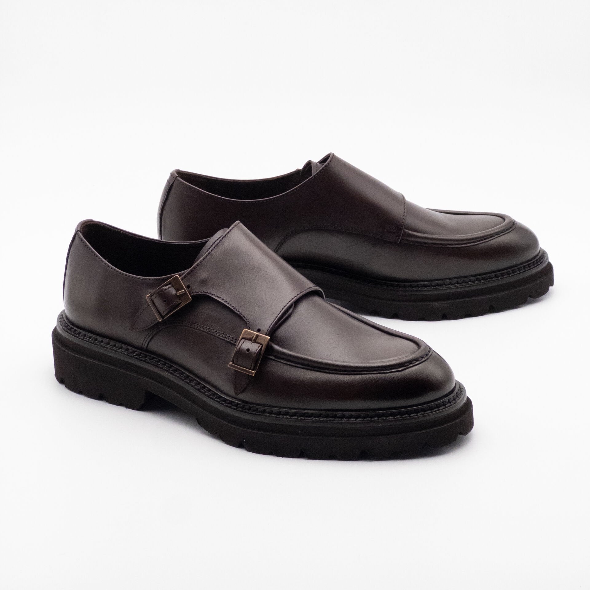 Erkek Hakiki Deri Çift Tokalı Kalın Taban Ayakkabı KAHVERENGİ - 44