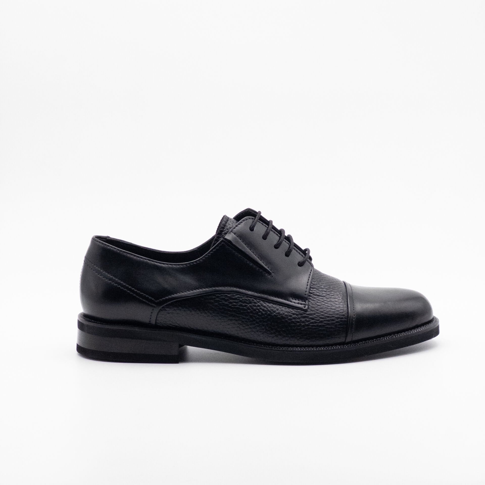 - Çift Dokulu Tasarım: Ayakkabının burun kısmı pürüzsüz deri ile tamamlanırken, orta kısımda kullanılan dokulu deri, tasarıma derinlik ve sofistike bir hava katmaktadır.